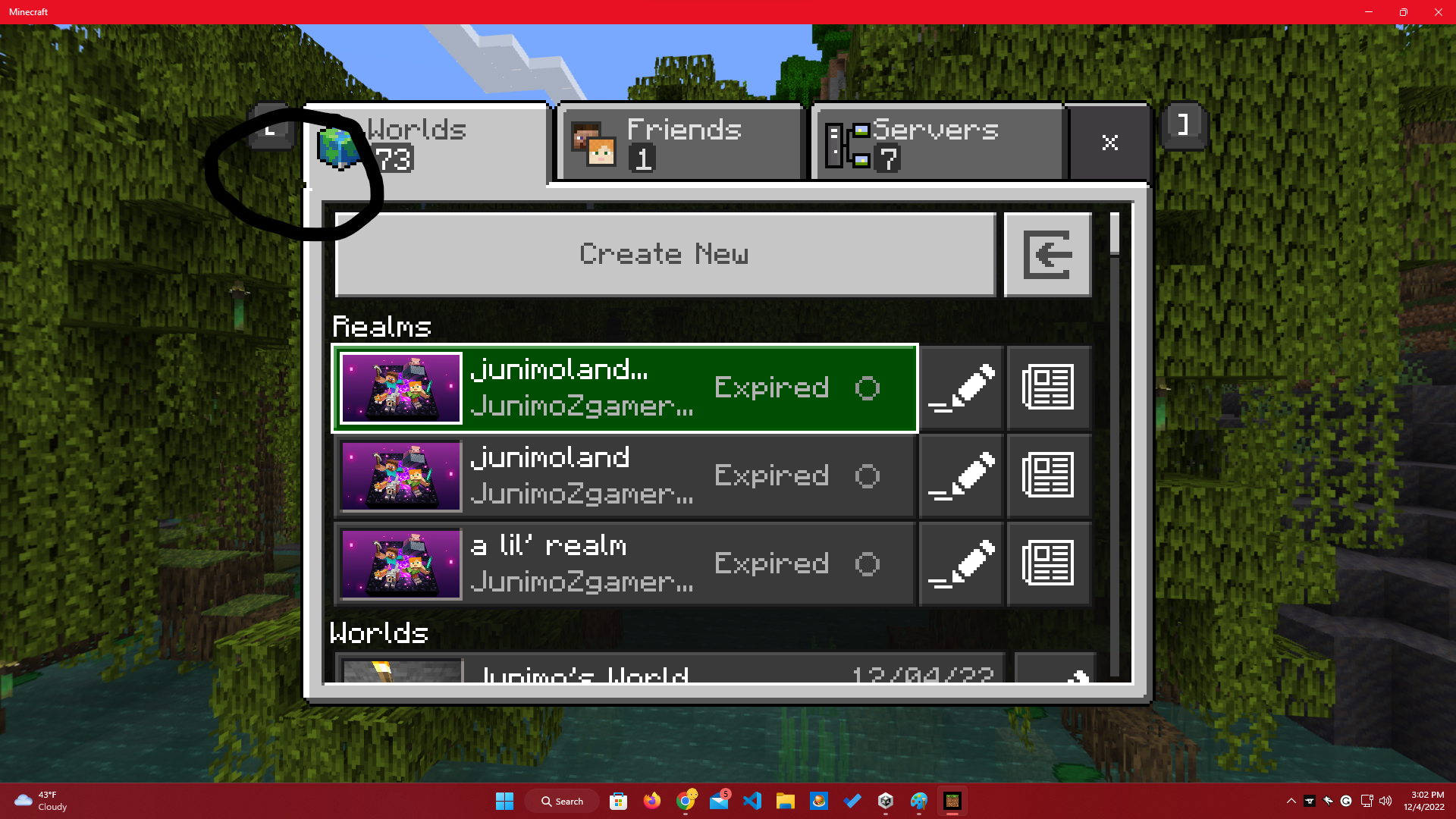 the "worlds" tab in the play menu is off by a little bit