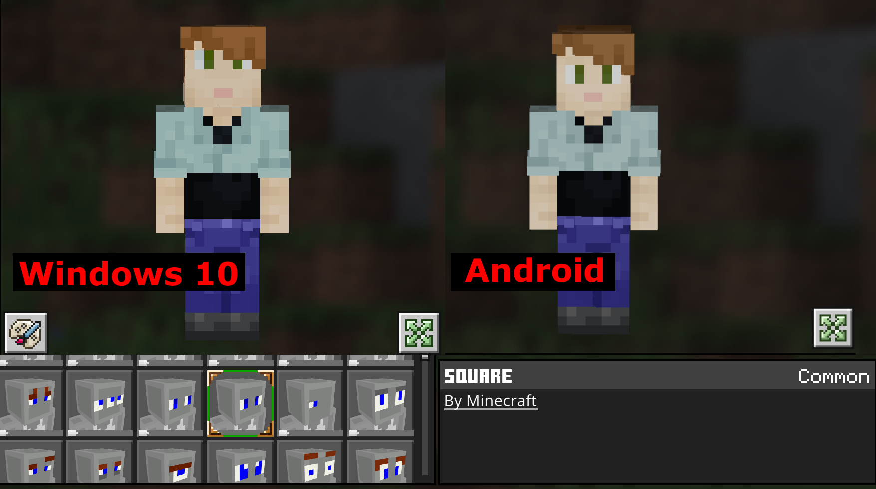 In the character creator, the 'SQUARE' eyes option appears higher up on Windows 10 than it does on my Android device. I have attached a labelled image showing the problem.