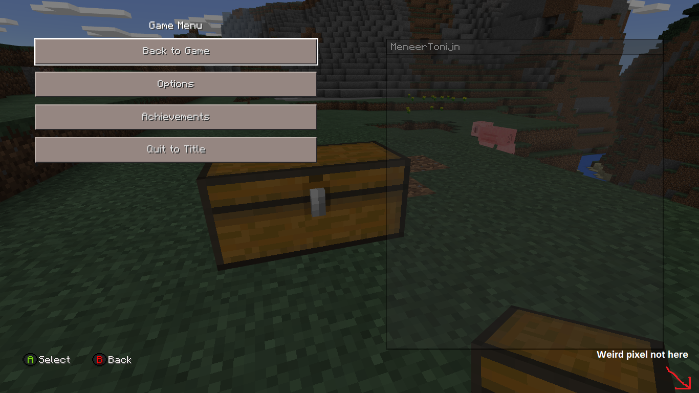 In every in-game menu, for example the chest menu or inventory, there is a weird white pixel in the under right corner. However, in the pause menu (Pressing esc key (Keyboard) / start button (Controller)) the pixel is normal