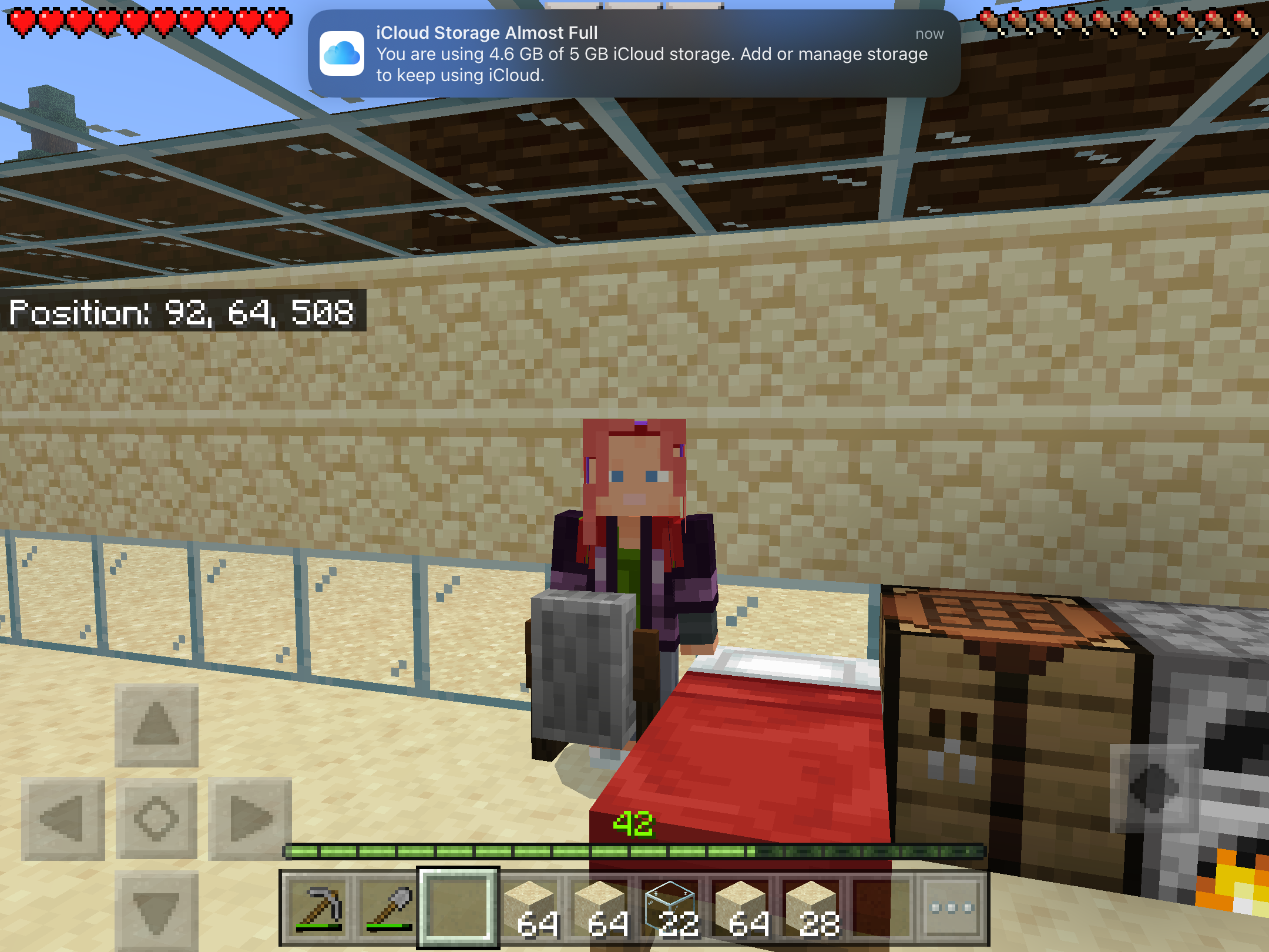 I slept the night away and woke up inside of a chest on my world. Unfortunately I didn’t get any pictures. Later on I made a new world and slept then woke up in a grindstone. This happened on my new iPad 9th gen