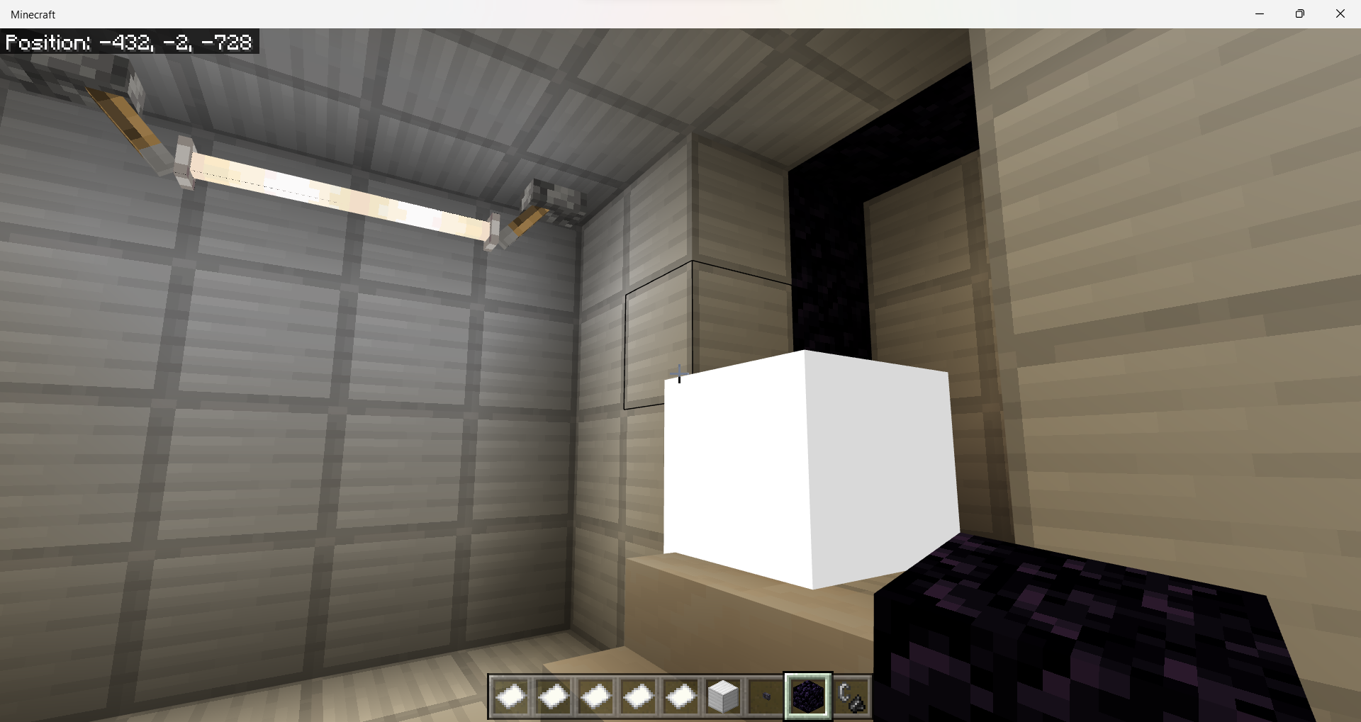 Nether portal spawned in a nether cave. Placed and ignited A BUNCH of TNT around the cave. Then I went back through the portal to the overworld. On the overworld side of the portal, there was a oversized (about 150% the size of a normal block), completely white, unmovable, indestructible block sitting there. i cannot break it, burn it, explode it, or interact with blocks through it. i can, however, walk through it.