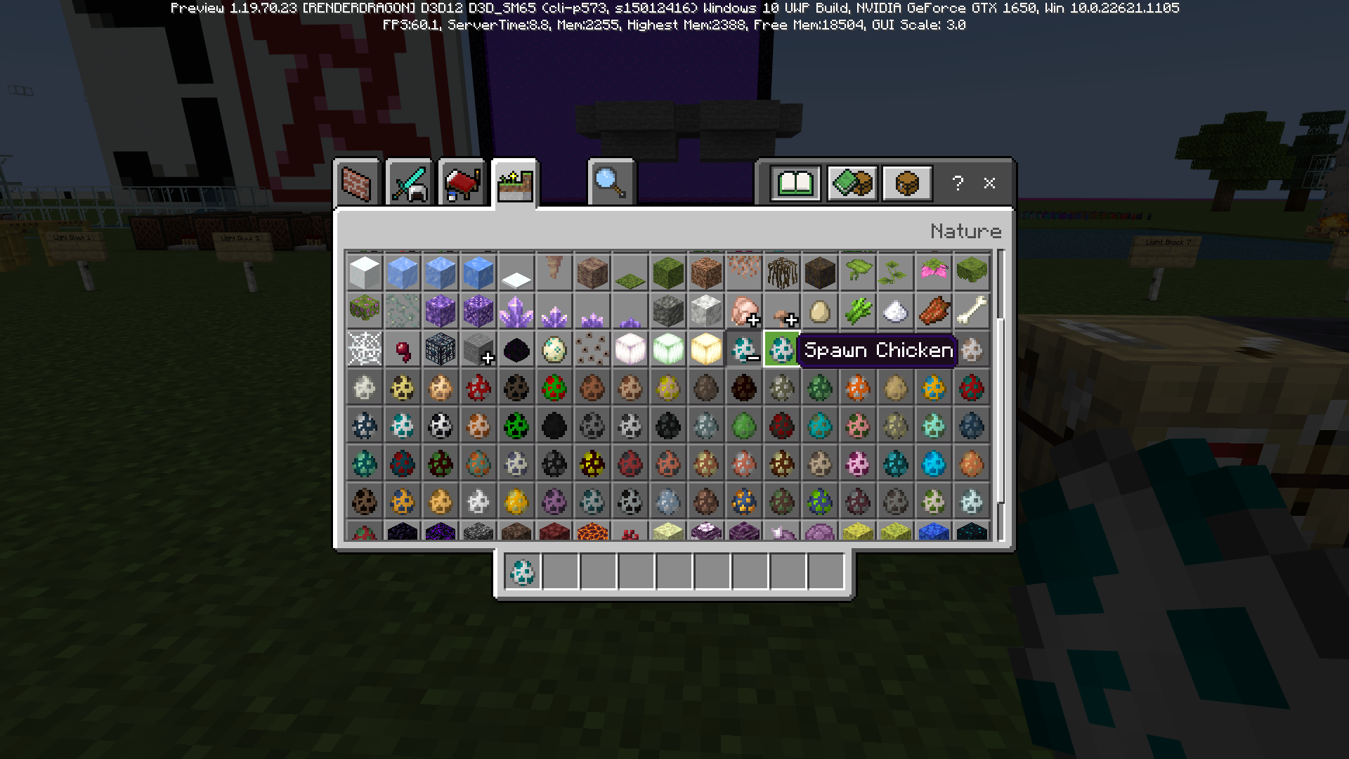 Create a world in creative mode;
