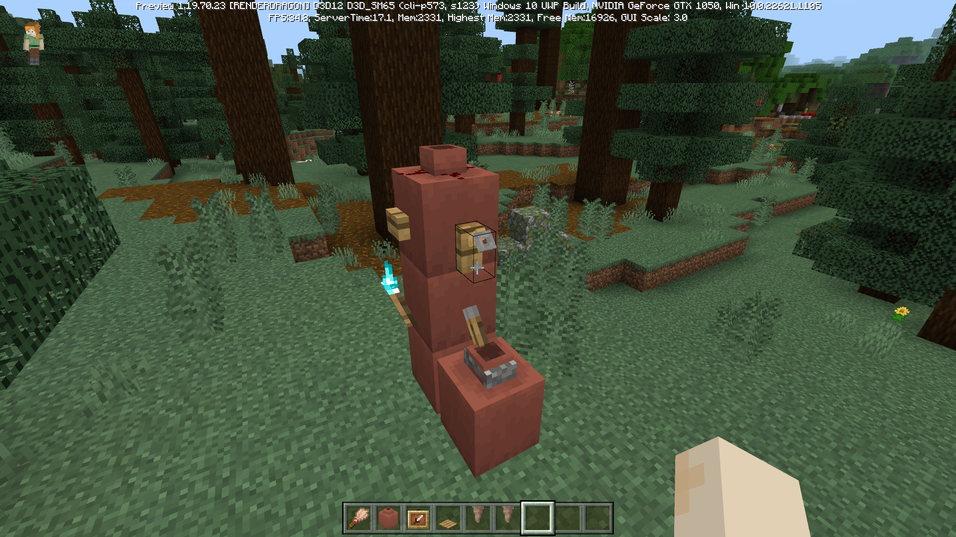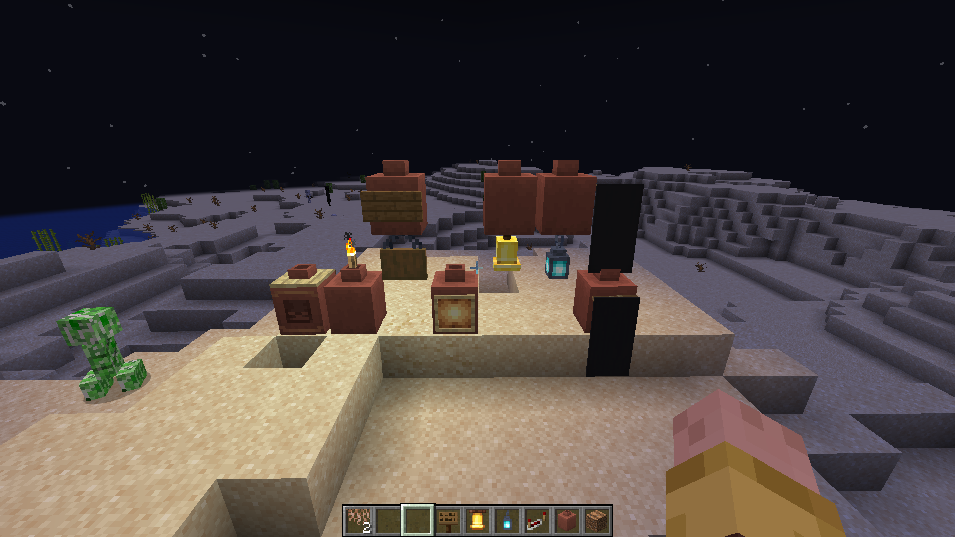 Almost any blocks can be placed on a decorated pot. This results in a z-fight, and floating blocks that require a supporting block. In Java, you can only place certain blocks on a decorated pot: