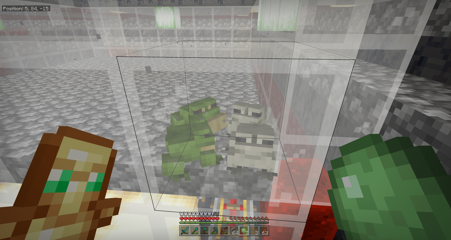 In Bedrock (On BDS) version 1.21.2, frogs get out of bottom slabs and sometimes hop into glass. They can also see player holding slimeball through glass. all 8 of 12 frogs have "escaped" into the hopper rail line under the slabs, or redstone storage outside the Basalt Delta Froglight farm in the nether.