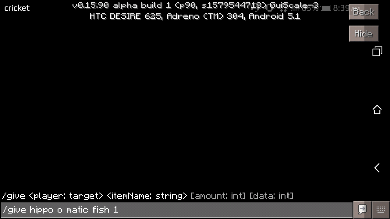 /give "hippo o matic" gold 1to see if that works? I'd test, but another bug is preventing me from changing my playername to something with spaces...