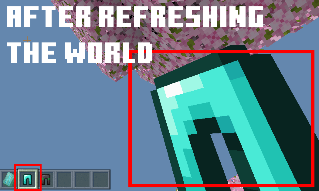 Indeed, if you trim in the first slot of your inventory bar a piece of armor (any one) and you equip it by right-clicking, the Trim texture remains displayed for all non-trim armors placed in the inventory bar in question (where you trimmed your piece of armor) until the world relaunch.