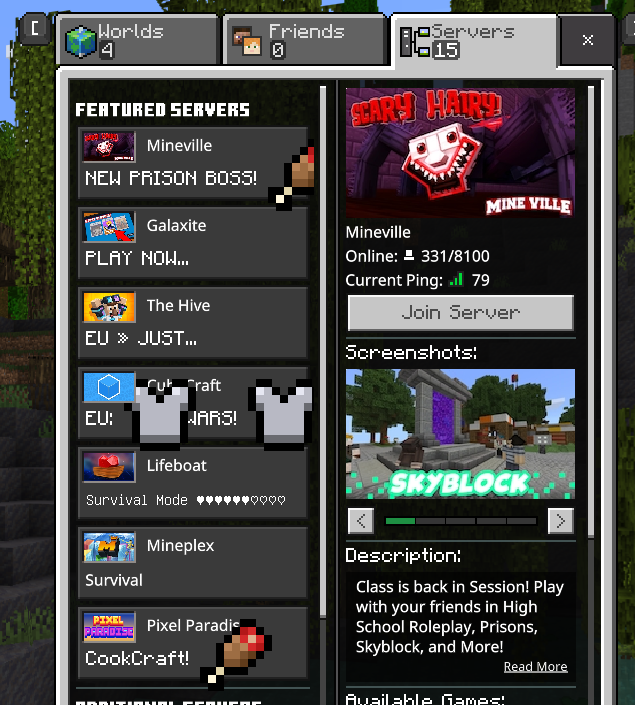 When i try to go to servers, i see minecraft emojis, which is weird that's enlarged that i cannot see the server names / descriptions, hope it's fixed in the next update π