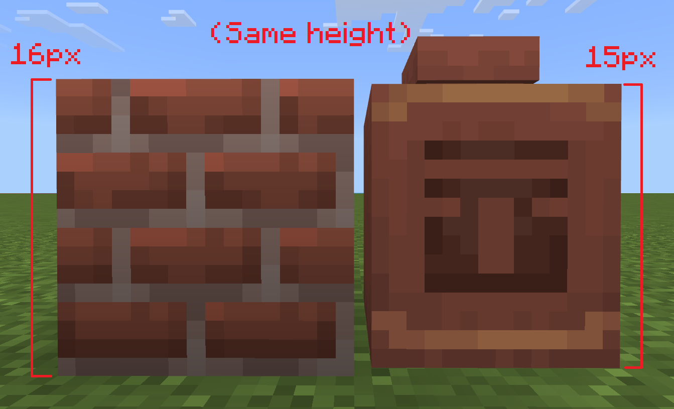 The decorated pot's main body is 16 texels high, the same as a normal block. However, it's stretched to fit a 15 pixel texture in that space.
