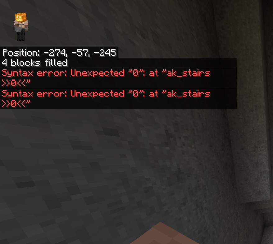 I was developing my world/server with /fill I put the correct coordinates and the block would be ''dark_oak_stairs'', however I noticed that when I put the position of the block that would be from 0 to 5 the game simply says that this command is wrong, and this sudden change discouraged me from continuing my world... get it back to normal... (how do i choose the position of the blocks now?
