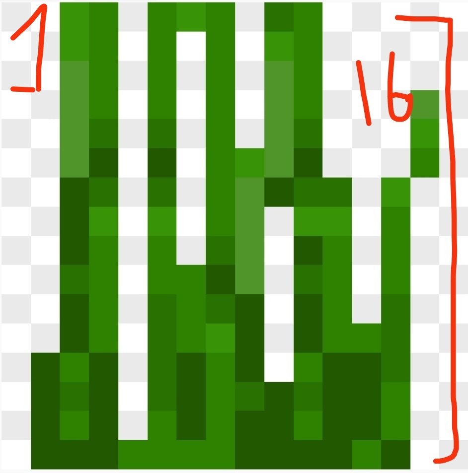 In this other image you will see the height comparison in the seagrass texture, in image 1 you can see a total of 16 pixels visible in its texture but in image 2 in the game it only loads or the block model only represents 15 pixels making it pixel 16 is buried under the support block also passes through the short sea grass
