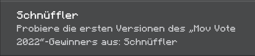 While recently testing the newest MCPE beta, I found a typo in the german translation at "Sniffer". There's "Mov vote 2022", but it needs to be "Mob vote 2022". Can this be fixed?