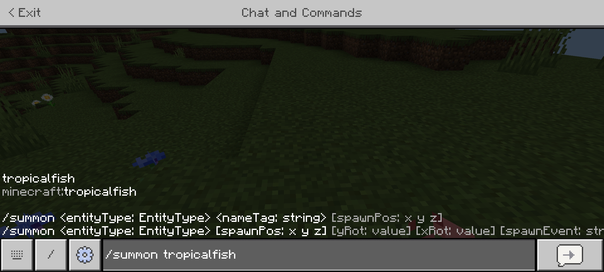 Type in /summon or any command related to Tropical Fish's ID