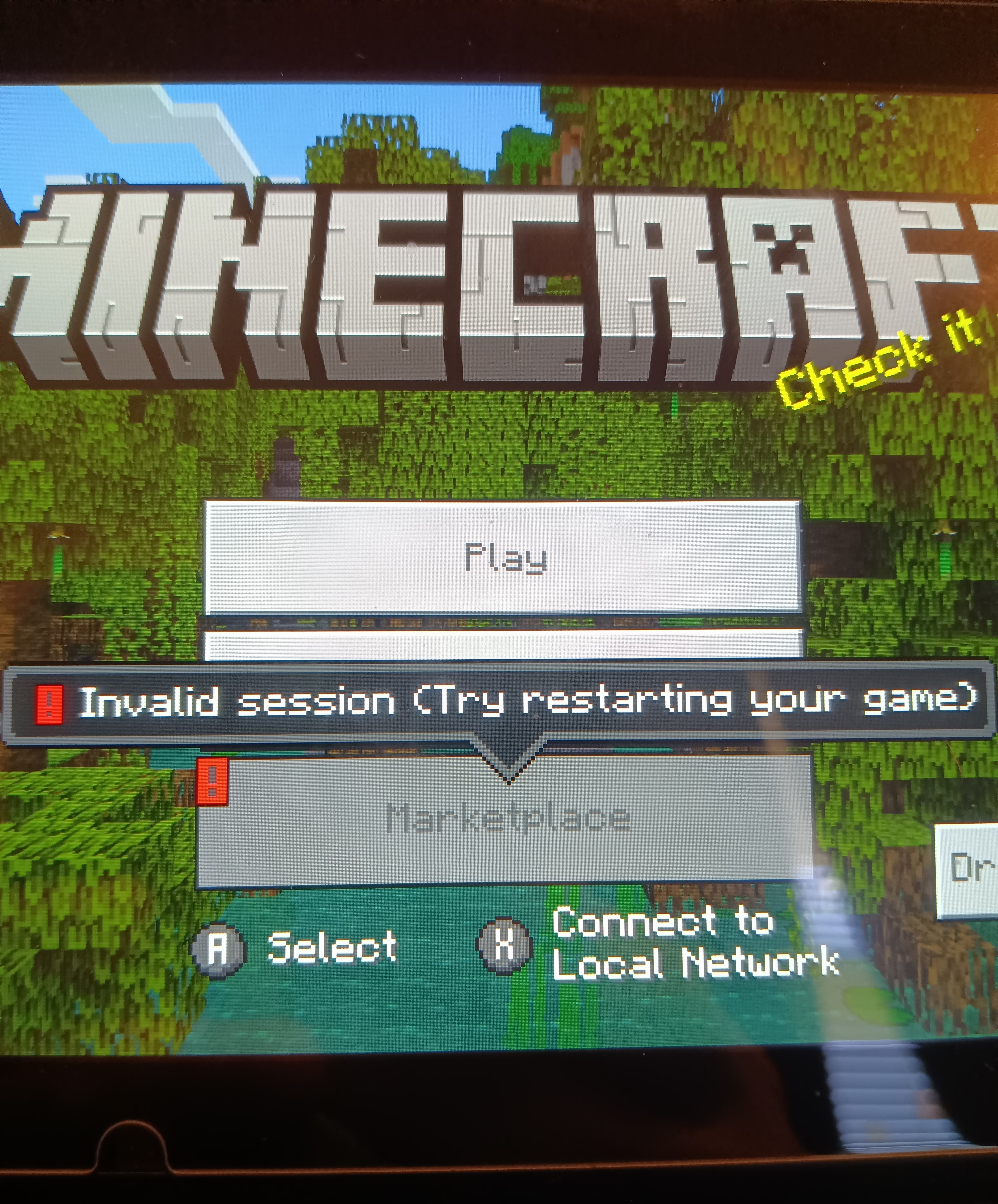 Every time I open Minecraft on my Nintendo Switch, my Microsoft account will connect, but my marketplace won't open, and when hovering over the marketplace icon, it says, "Invalid session (Try restarting your game)." Also, when I try to change my skin, the dressing room opens, but refuses to load. I've been having this problem for around a month and a half, and it's really annoying not being able to use my minecoins or change my skin. I'd love a fix to this bug*, please and thank you.