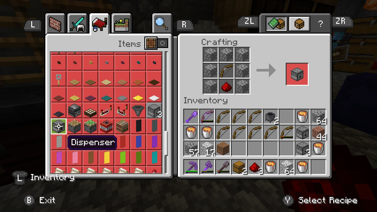 When I was trying to make a dispenser for a project in my survival world that has never been put into creative mode, I was unable to craft it, even though I had more then enough materials then necessary. I've tried saving and exiting and even restarting the game, but that didn't fix the issue. I had no problem crafting one before, but now I can't craft them anymore. The character creator menus are a little messed up as well. When I try to scroll down (ex. Body - Hair) it will only show a little bit of the content, before completely cutting the rest of. It does this for every tab and the game must be fully restarted to actually fix the issue, and the start up time for the Nintendo Switch is pretty long (about 3-4 whole minutes for my console. It has 15gb os space, and very little has been taken up.) No matter how many times I start up Minecraft, it still takes a long time to actually load everything. The marketplace has an issue that has a temporary fix. When buying/downloading/updating a map or texture pack, it will refuse to update or let you download things because there "isn't enough storage on the device". The temporary fix is to delete any worlds or packs you aren't using (including your main worlds), find the content you want to download, delete it if it needs an update, and download it again. It does not matter how much space you have on the device or an SD Card, it will tell you that there isn't enough space for what you want. Hopefully, this all can be resolved soon. Thank you.
