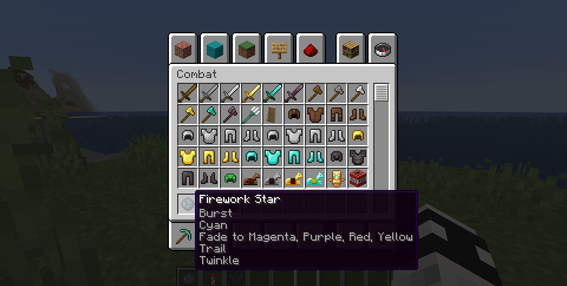 Load into a world in creative and take any of the items affected