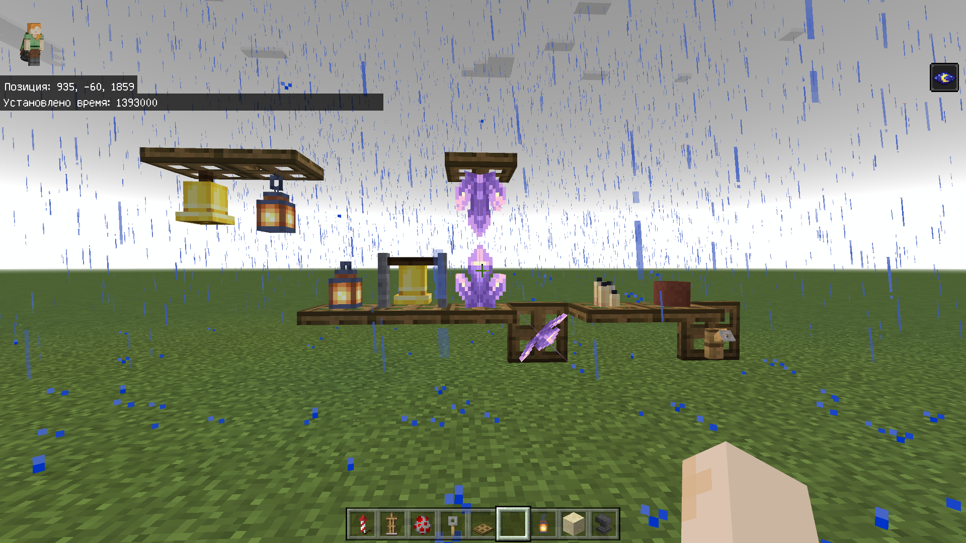 Lanterns, Bells, Amethyst Clusters, Candles, Flower Pots, and Tripwire Hooks cannot be placed on trapdoors