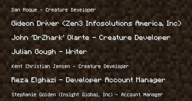The game has a special font that's used when a character is not part of the default one. However, in the credits, specifically under the "Special Thanks" section and derivatives of it, some names use the special font despite not needing it.