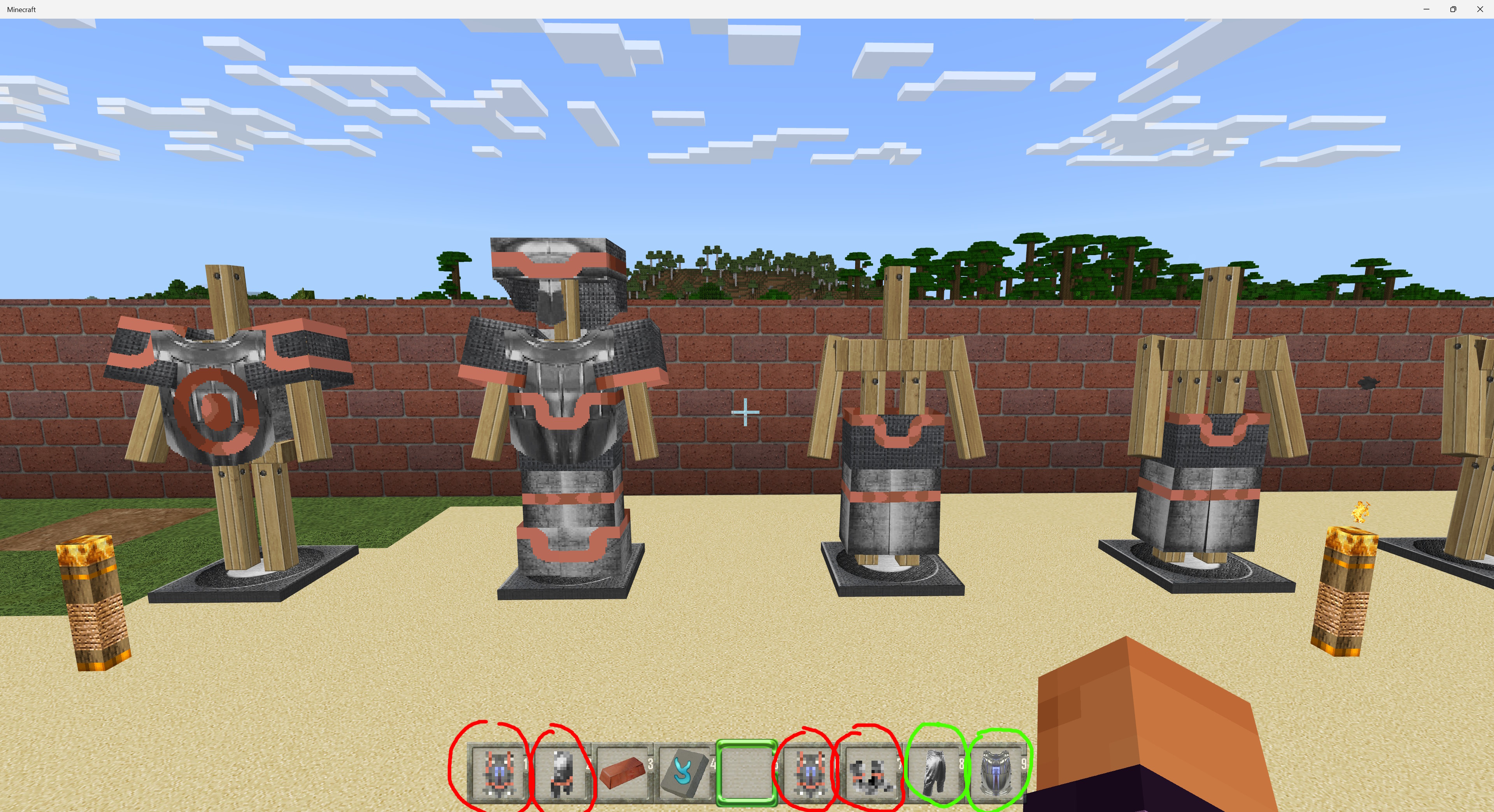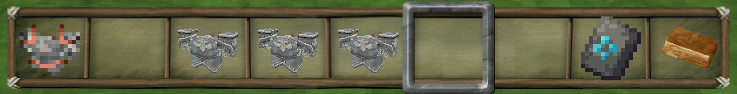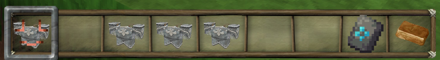 Create a new game, build a trimmed armor, and put it in the toolbar. In this example, I placed trimmed chest-plate armor in the toolbar. Place also some clean (not trimmed) chestplates in the toolbar as reference. See step_1.jpg file.