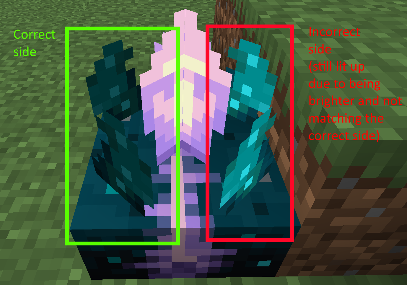 The two of the calibrated sculk sensor's tendrils doesn't match the other side, as if the right side is lit/more brighter, while the left aren't.