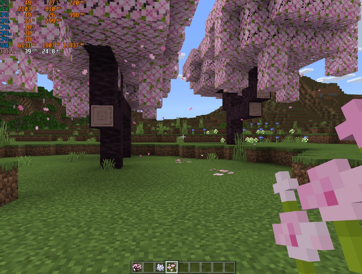 There is a bug in the cherry trees, when one is close to the trees, the performance drops to such an extent that the fps drops to less than 40, I have a gtx1660s with an i5-12400 and there is no problem regarding performance Except for that part, I am attaching a screenshot, it is not a particle error, but if this happens in the PC version, it could be worse in the mobile version.