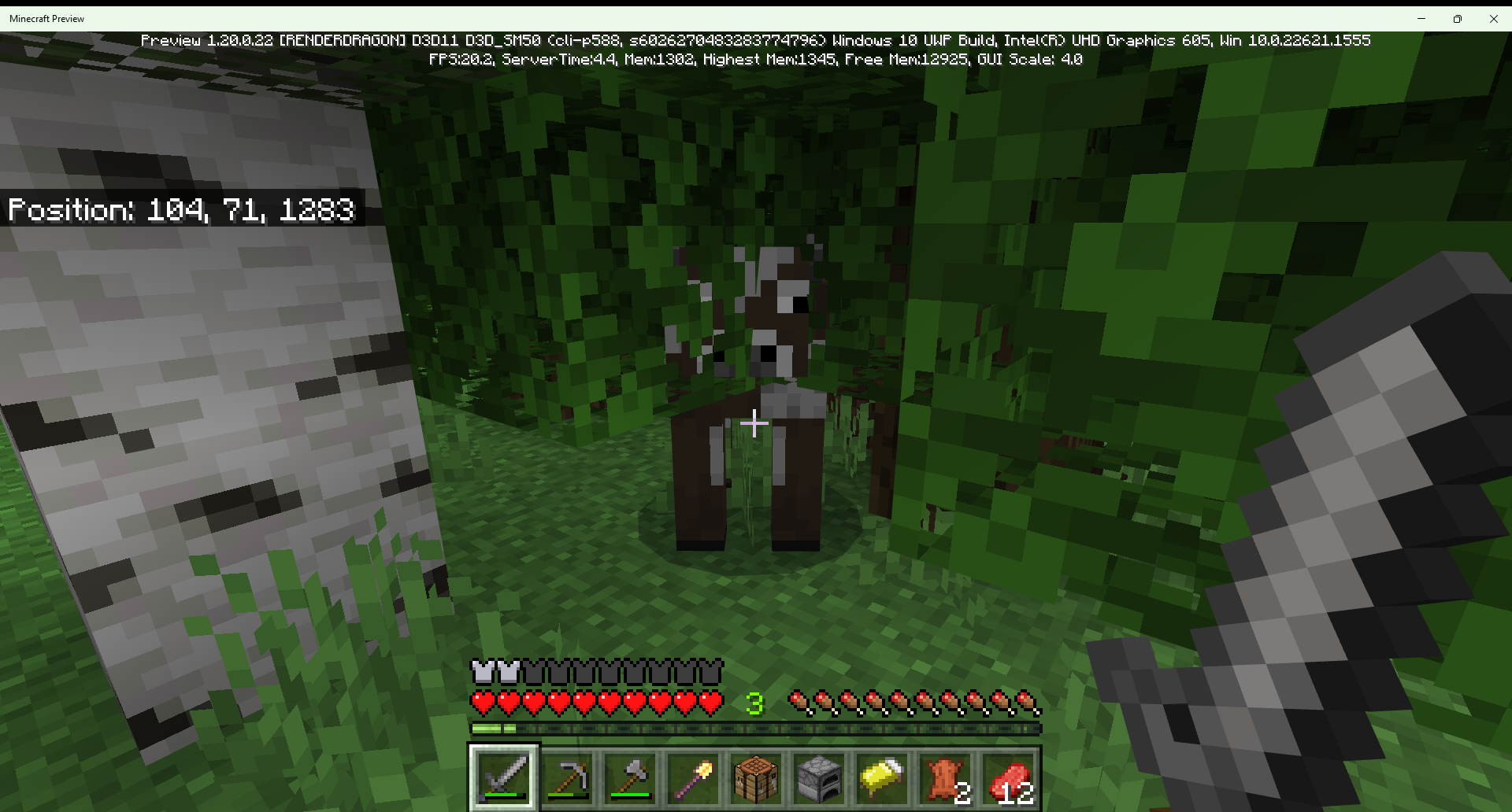 While testing in Minecraft 1.20 preview, I found this random cow spawn in leaves of an oak tree.