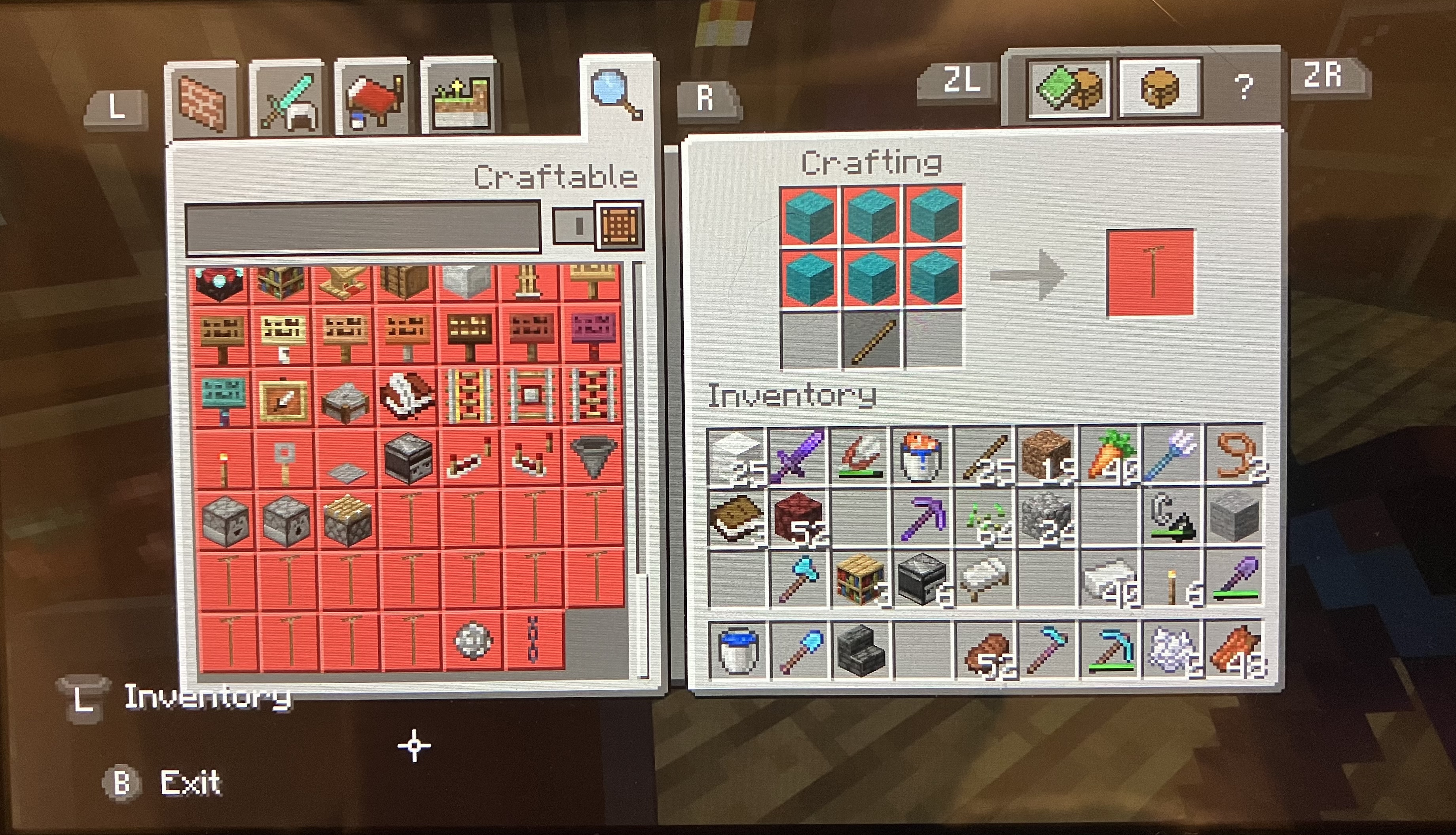When the banner crafting button appears on the left side of the crafting table UI, its model only shows the beam. The cloth part of the model is missing from it. This also occurs in the box where you take items out of the crafting table.