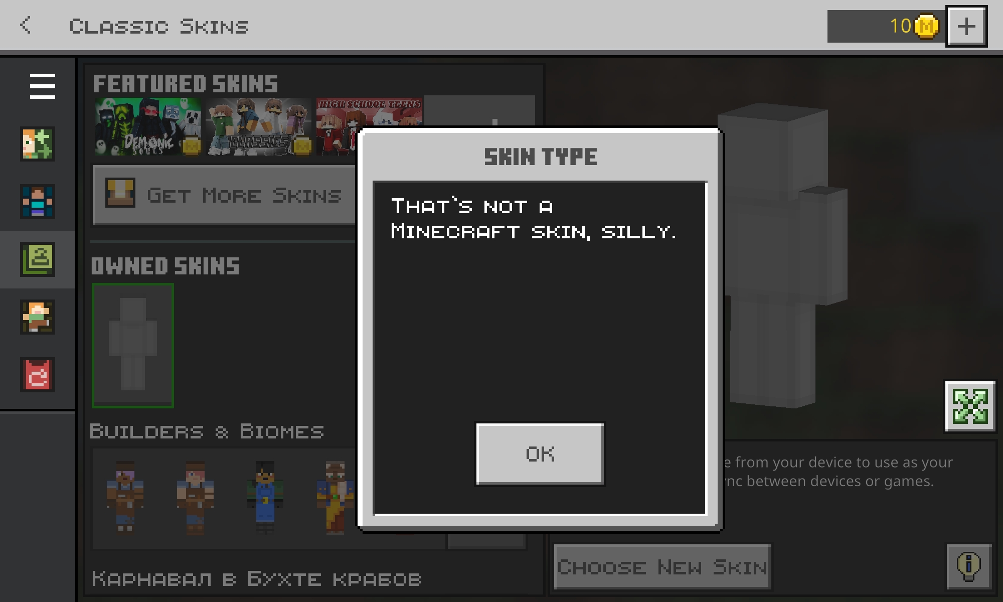 I'm importing a classic skin into minecraft, but a message appears saying it's not a minecraft skin (this is minecraft skin 64x64)
