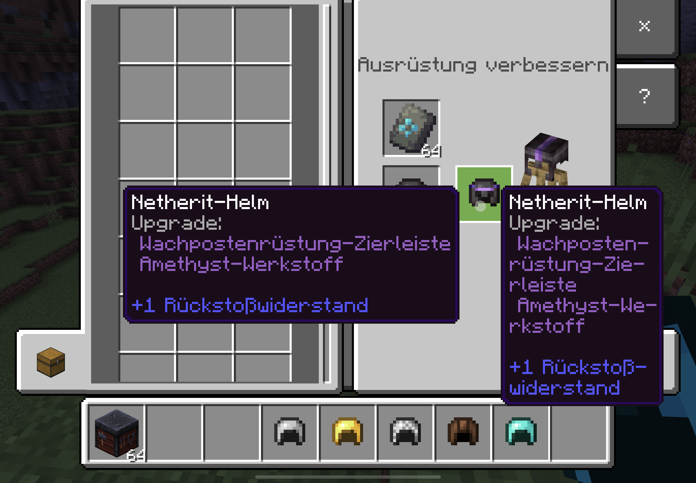 Information about items in the forge table and decorated armor is displayed twice.