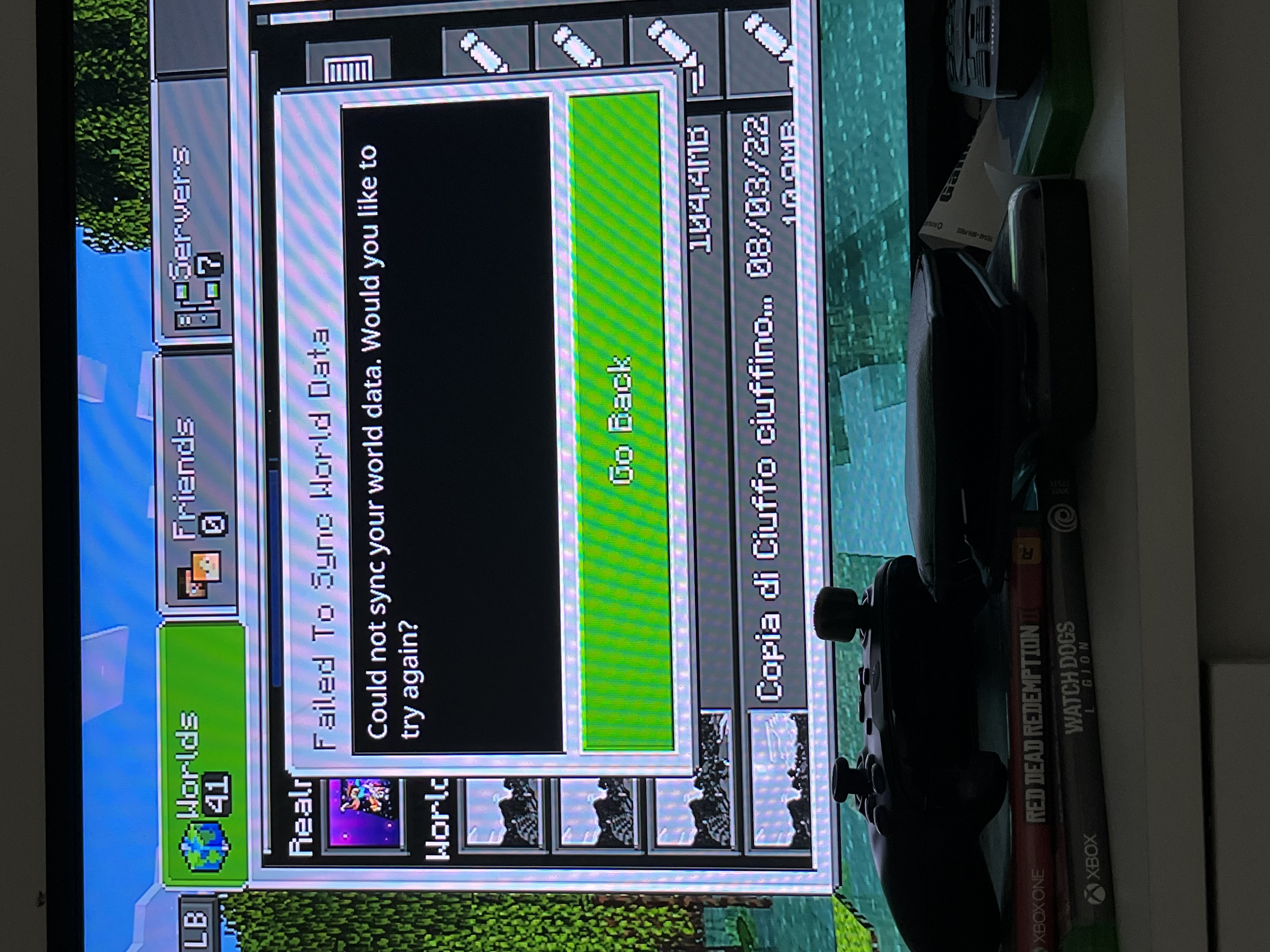 I was trying to play after 4 months since the last time, then when I was trying to enter my favourite world I got this: “Could not sync your world data. Would you like to try again?”. This happens only with this world.