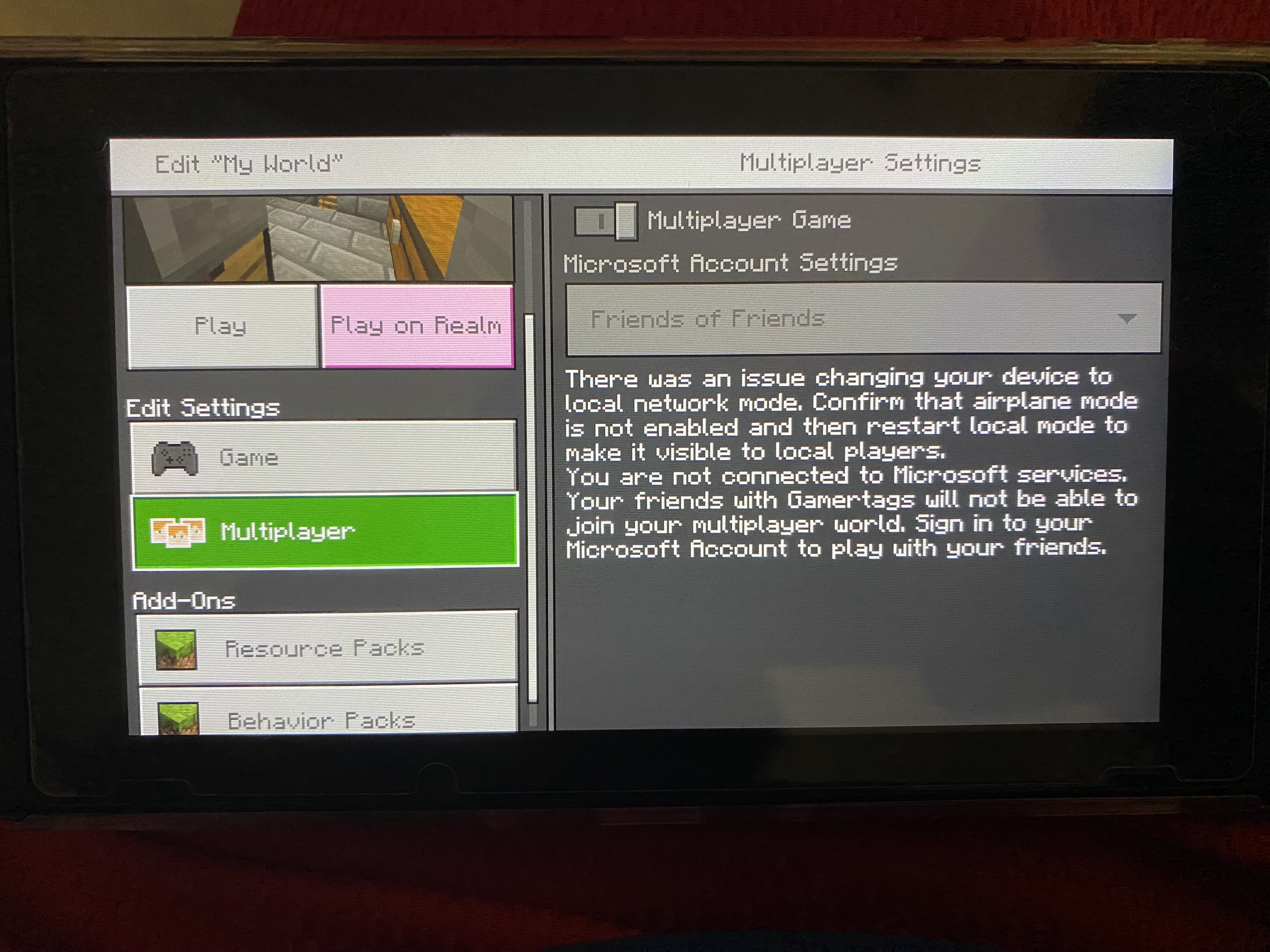I've been having a recurring issue with connecting with my kid on Minecraft. We play all the time, him on our Xbox Series S, and myself on my Nintendo Switch. Both are connected to Microsoft accounts, and up until recently, we've had little to no issue connecting and playing together. He and the Xbox host, and I connect to his world with my Switch.