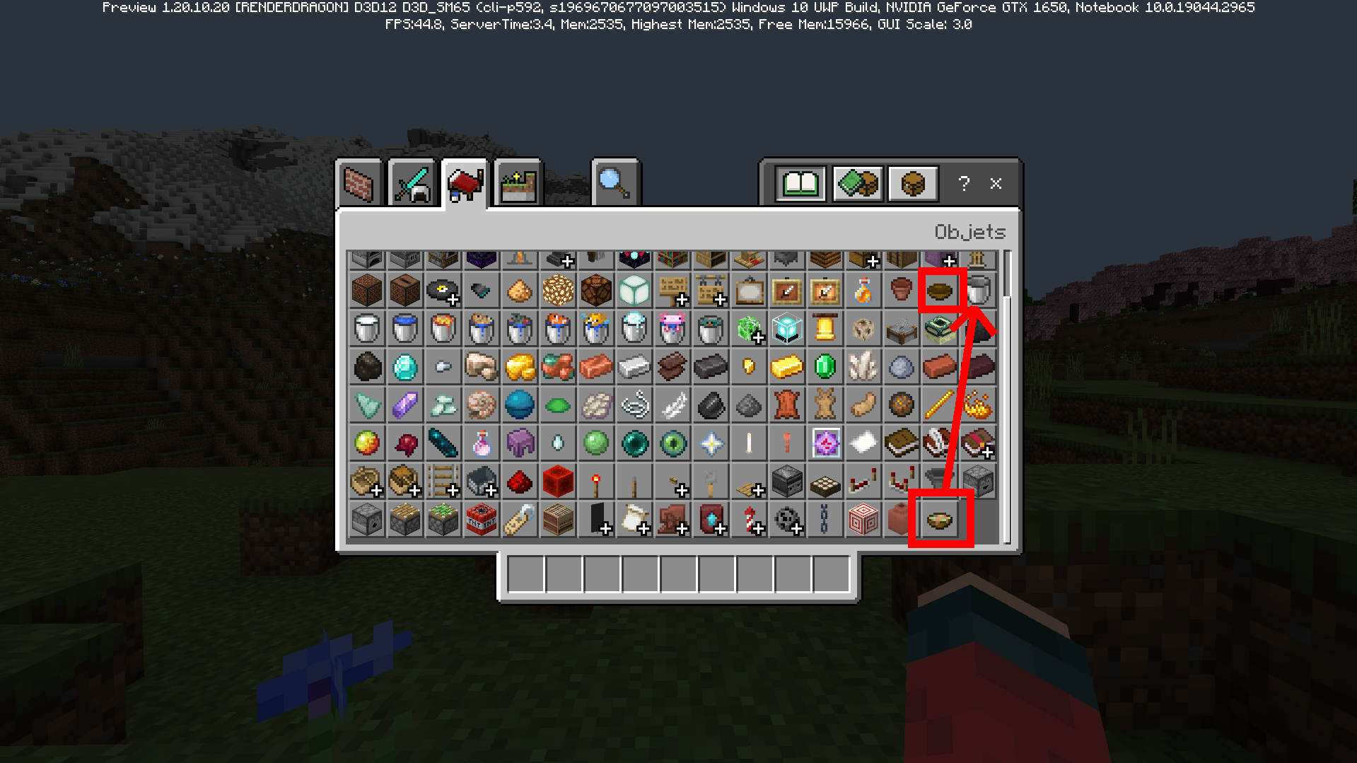 As you can notice, the suspicious stew is placed at the very bottom of "Items" category.