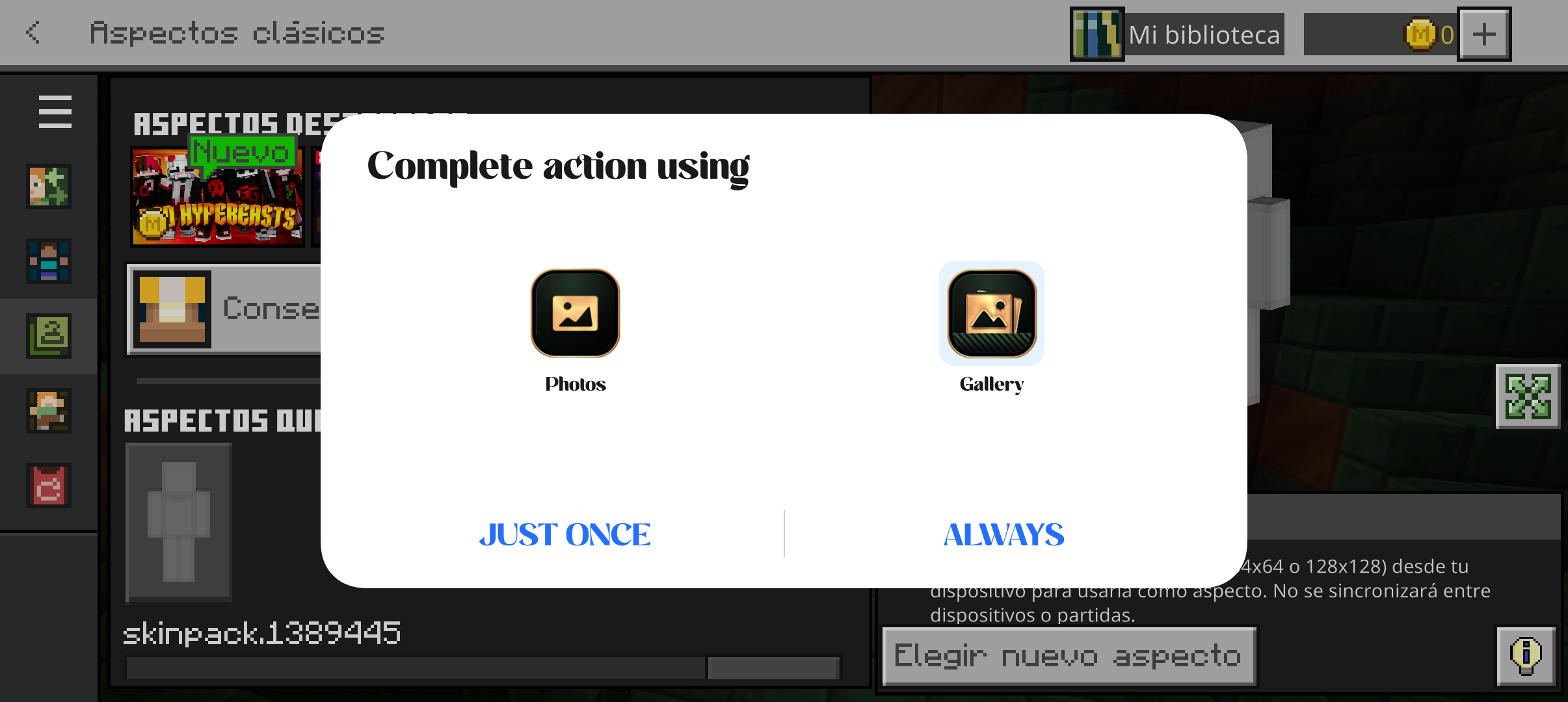 Also, for those still experiencing the issue on Android, could you please attempt to use a different gallery app to choose the skin? Choosing a different app to open and choose a custom skin might be a valid workaround for you.