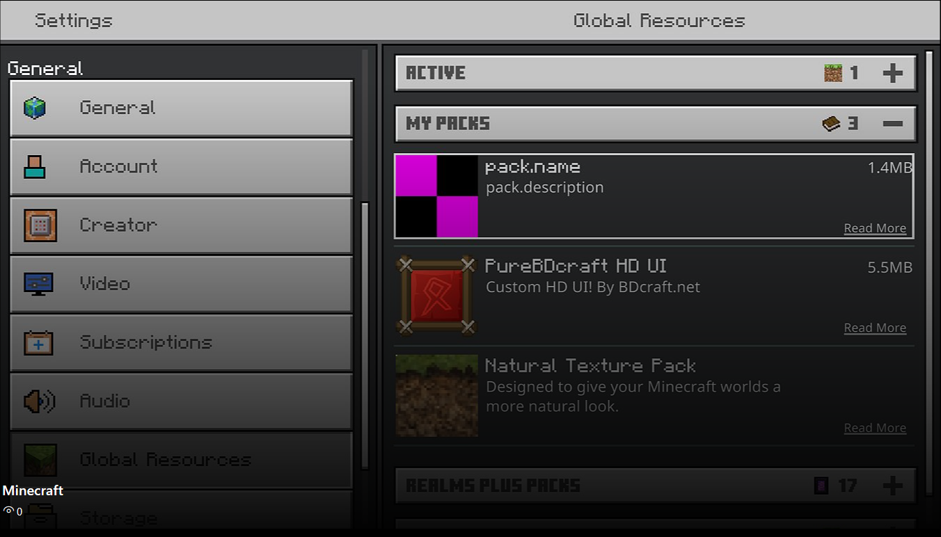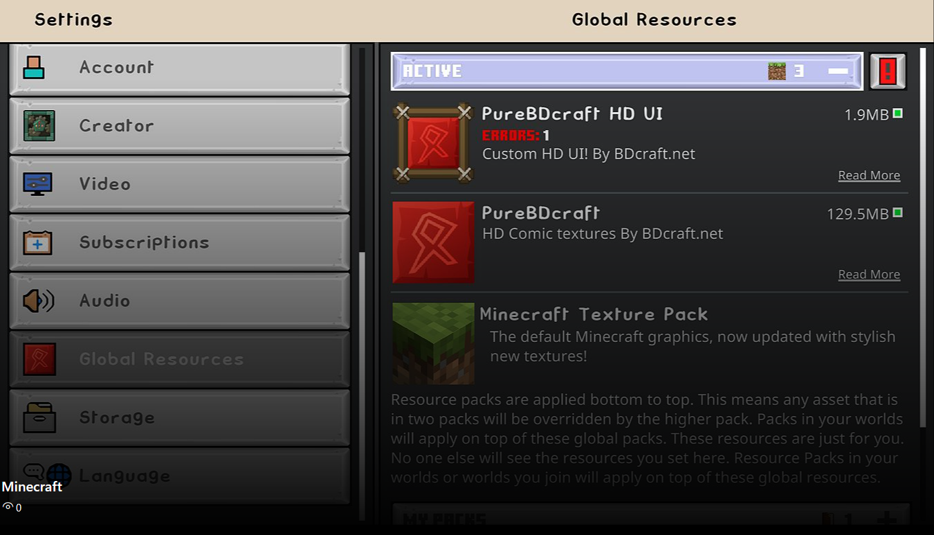 then one you have your pack installed exit the game and get back on and you should notice that your UI if your pack has one won't activate and if you load up your world it won't activate the textures from the pack