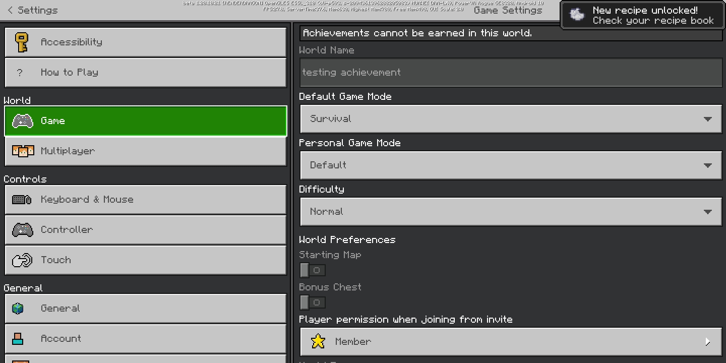 Recipe unlocking UI can appeared at world pause menu or world settings.
