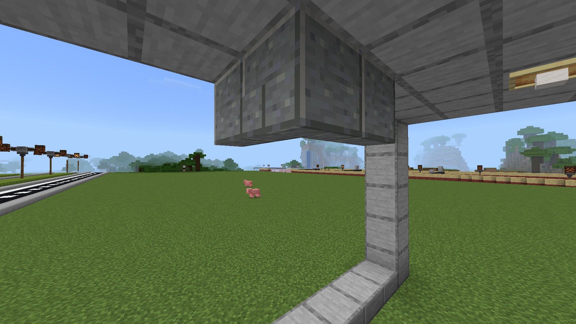 When placing Polished Andesite Stairs in a corner, one of the full size faces will have the correct texture however the other face will have a glitched texture which can be seen in the image I've attached.