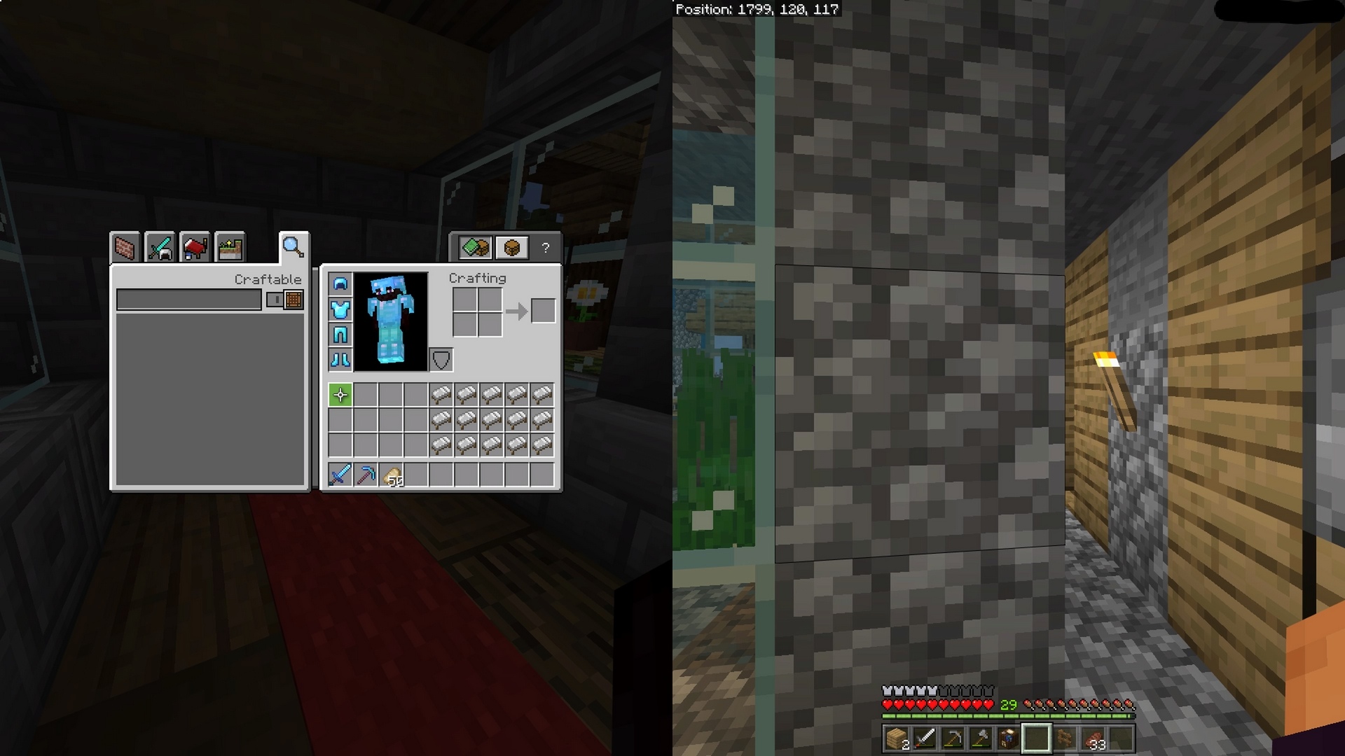 When some player opens inventory, pause menu, chat or is in third person, crosshairs of other splitscreen players flickers or completely dissapears.