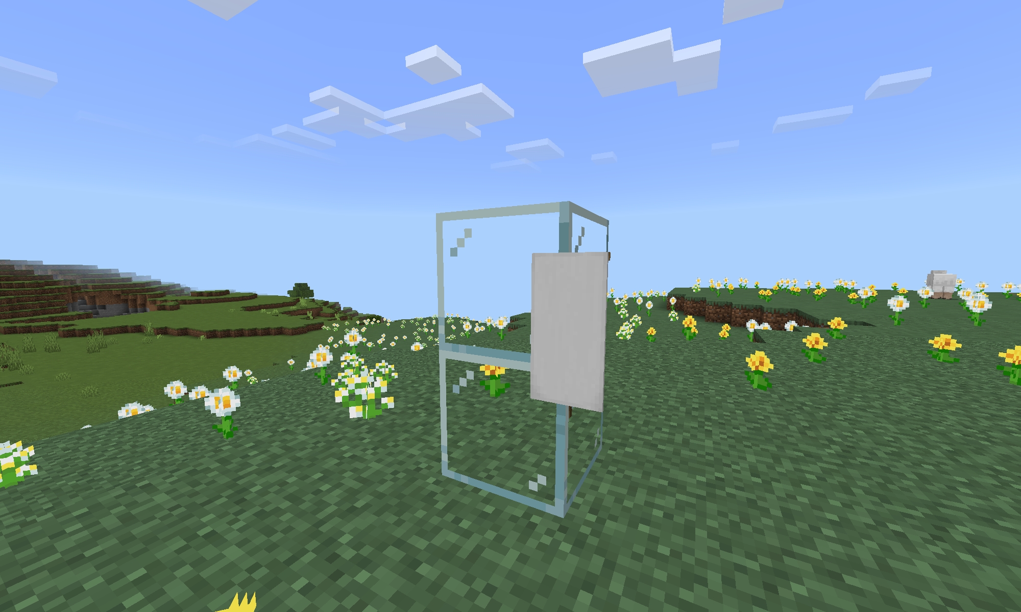 Banners of any color are visible through the glass block and glass panel (also any color)