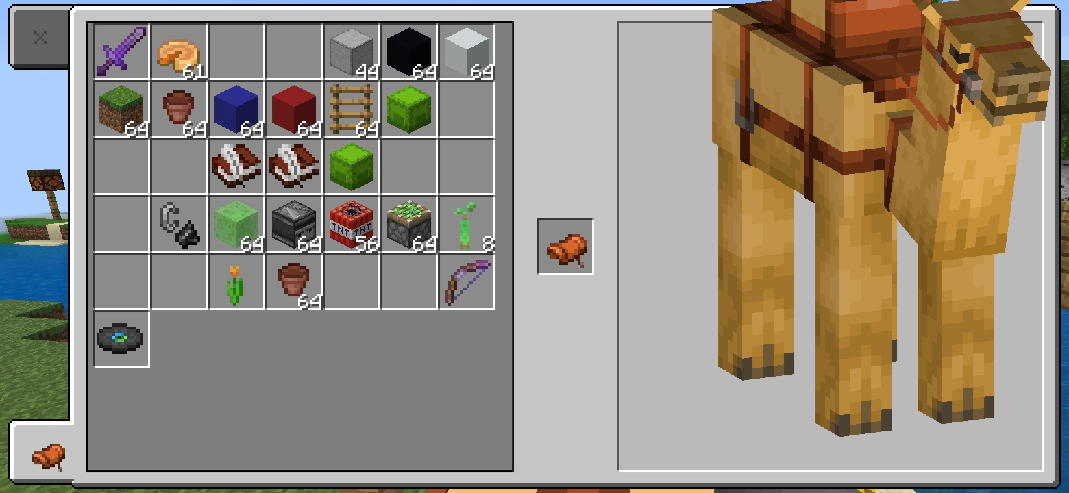 When I opened the inventory after riding the camel, I saw that the camel was overflowing from the inventory.