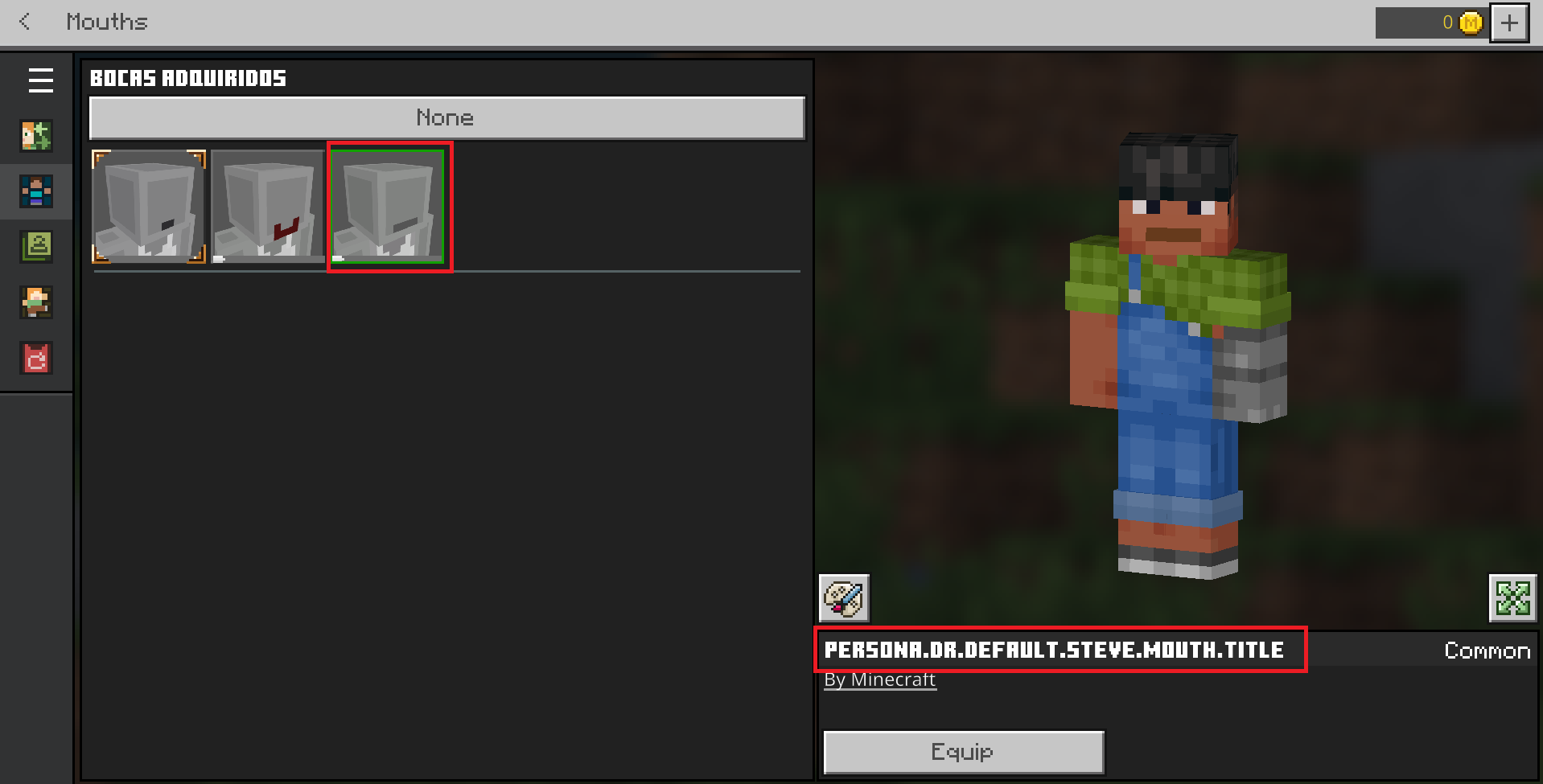 On the "Mouth" section of the skin editor, a title of a unknown mouth is displayed incorrectly.