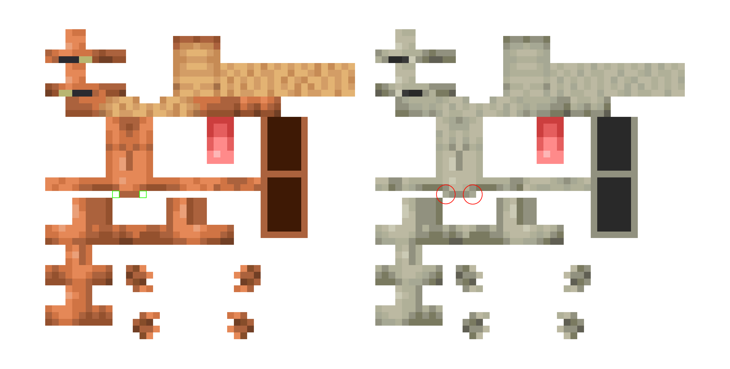 The Warm Frog texture has two inconsistent pixels placed around it's top lip, as compared to the other variants.