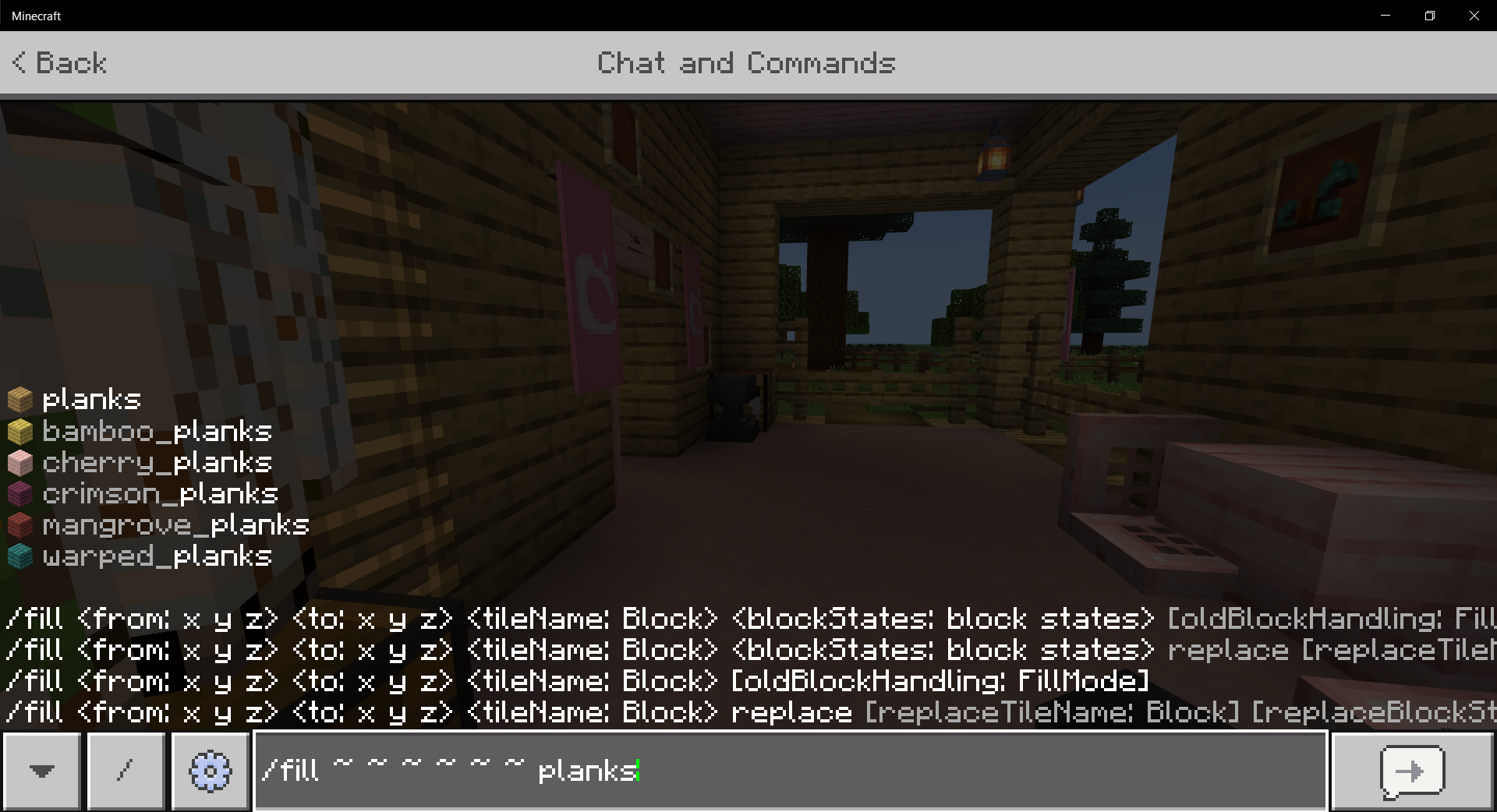 /fill ~ ~ ~ ~ ~ ~ planks ["wood_type" : "acacia"]