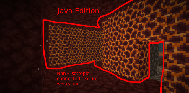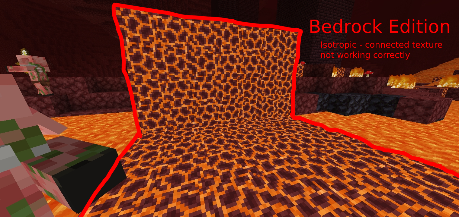 In game, the Magma Block texture is set to be isotropic (randomly rotated) and it leads to the connected texture being rendered incorrectly. It's an eye sore! This is not the case on Java Edition and it looks fine.