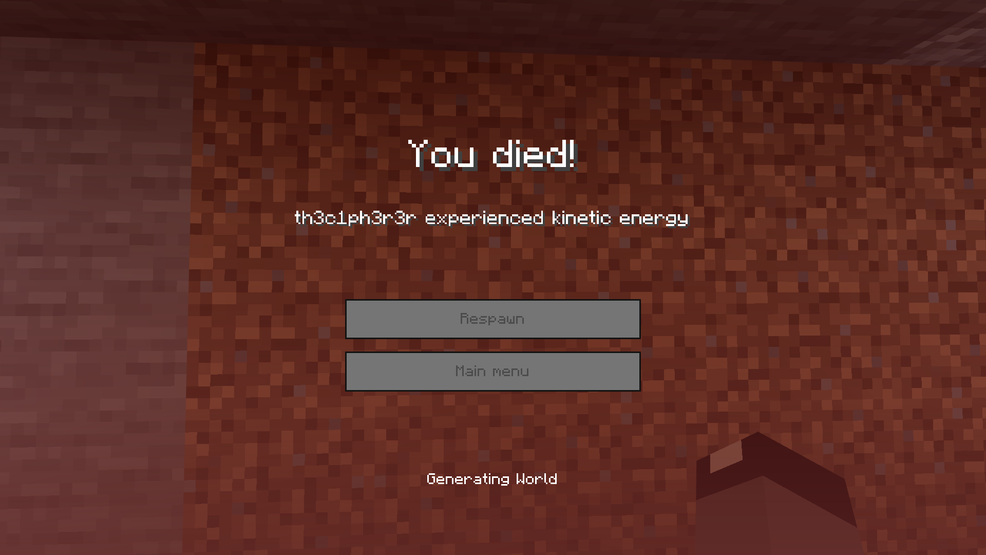 Pressing Enter will bring you to your spawn area, then shows you a softlocked death screen where the buttons cannot be selected, while on the other hand clicking it goes back to the game normally.