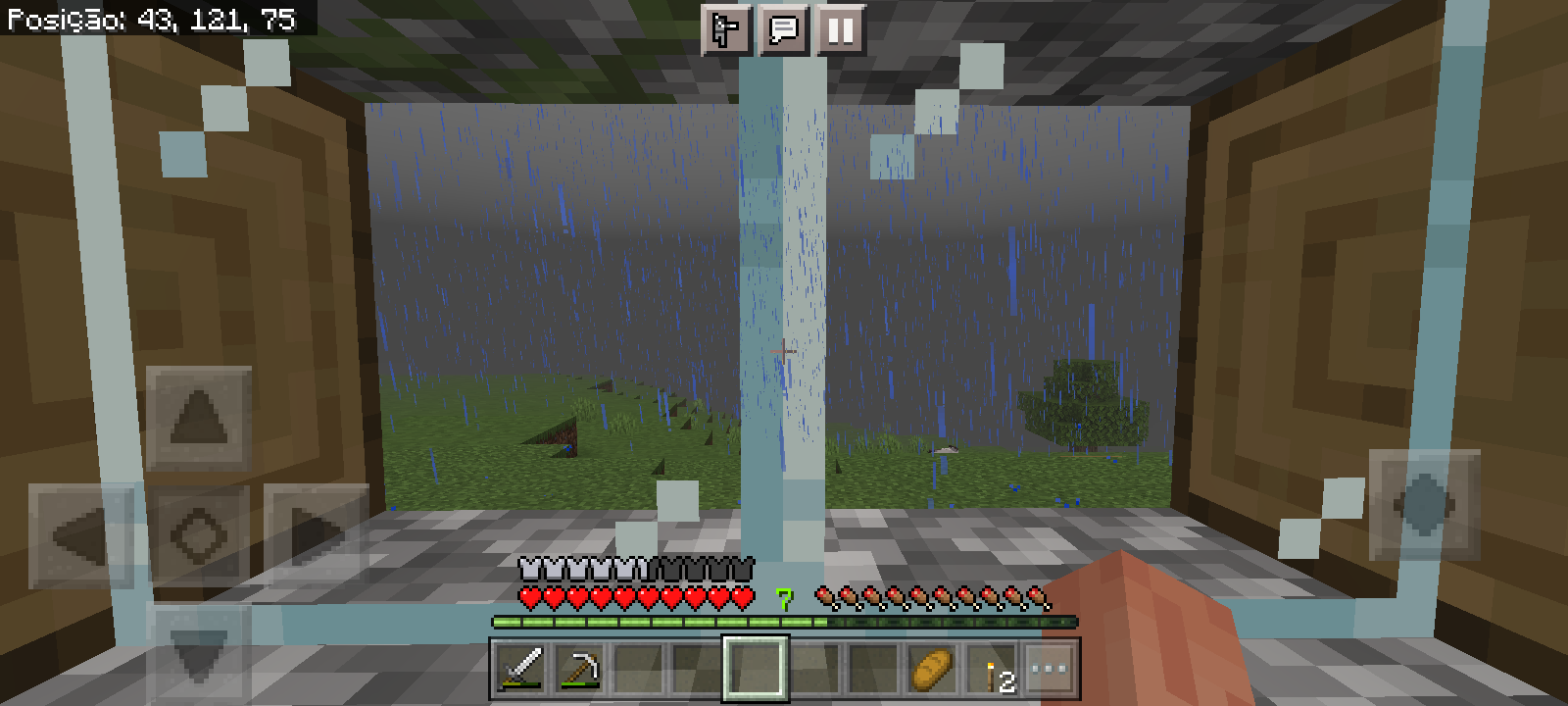 When it is raining and you look through the window made of glass panels, you can see that the rain particles are overlapping the texture of the edge of the glass panels.
