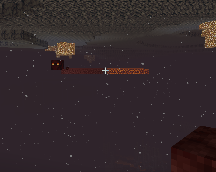 To be sure mobs were spawning, I then built another 9x9 platform out of Netherrack, next to the magma block platform with a one-block gap of air between the platforms.