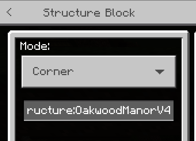 Also, you only need the corner block that is in the opposite corner (in all dimensions) from the structure block (you don't need one at every corner). For example, looking at TowerMansionV4, its structure block is at 109 -62 0. You'd only need the one corner block at 145 -29 44 to select the entire structure.