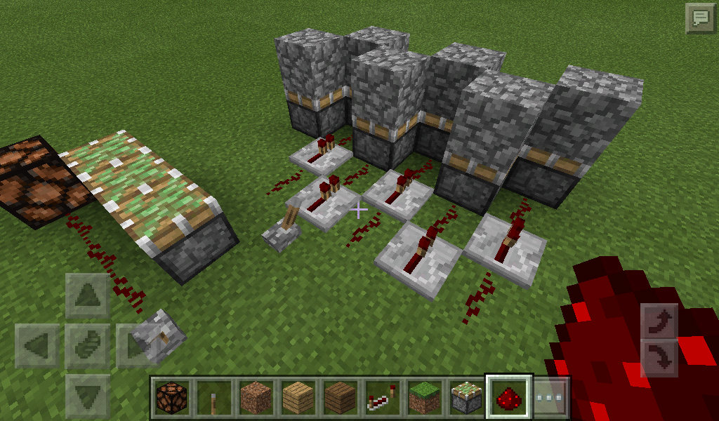 In versions 0.15.0 - 0.15.2 redstone acts normally. But in versions 0.15.3 - 0.15.9 redstone connects directly to pistons as shown in one of the screenshots. This doesn't happen in Minecraft PC because if it did it would make redstone less compact. If you wanted to run a wire alongside a piston it would need a one block gap or else it will disrupt the piston. You might think this is good but most of the time it causes many problems when building with redstone.