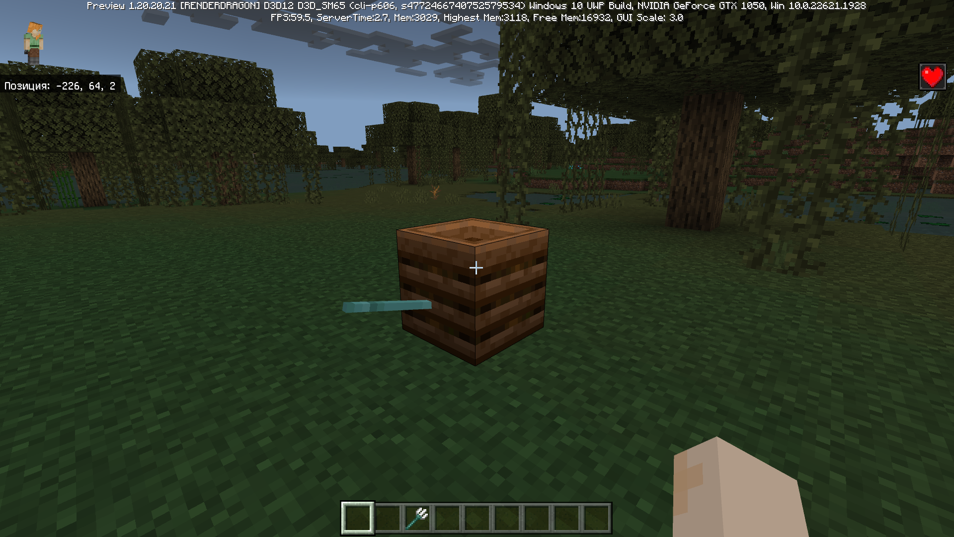 Projectiles sometimes goes through the outsides of the cauldron and composter. This happens randomly from different sides, but the eastern and south sides reproduce with a high chance. This started happening with version 1.20.10 (probably due to changes to composter and cauldron hitboxes MCPE-102451 / MCPE-59923).