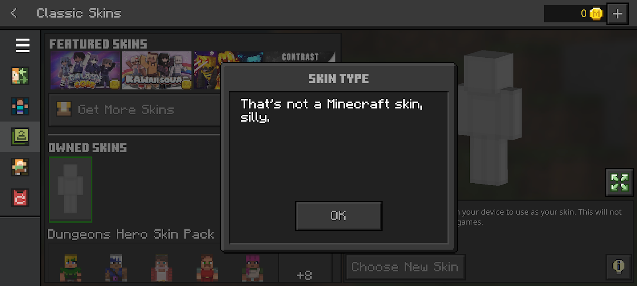 When trying to import a custom made skin as a .PNG file, I get the "That's not a Minecraft skin, silly." error.