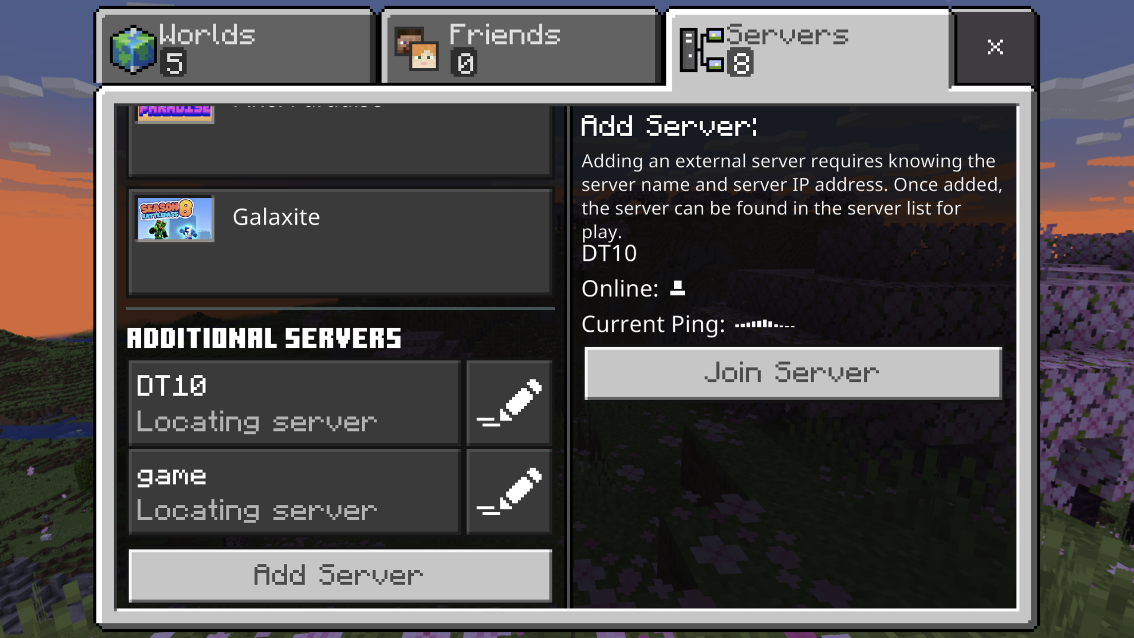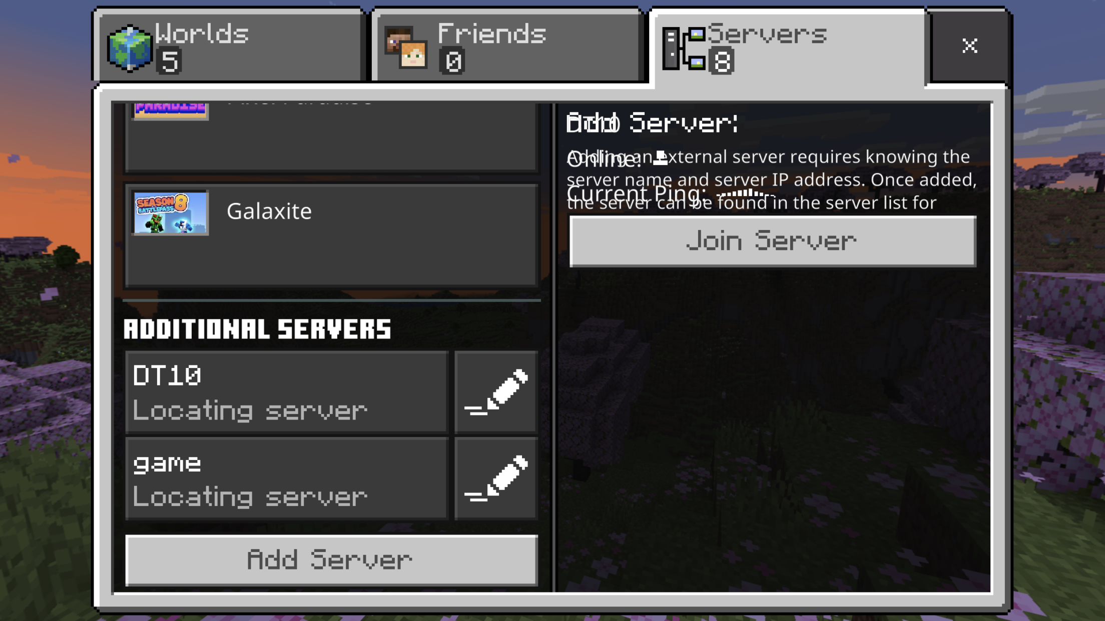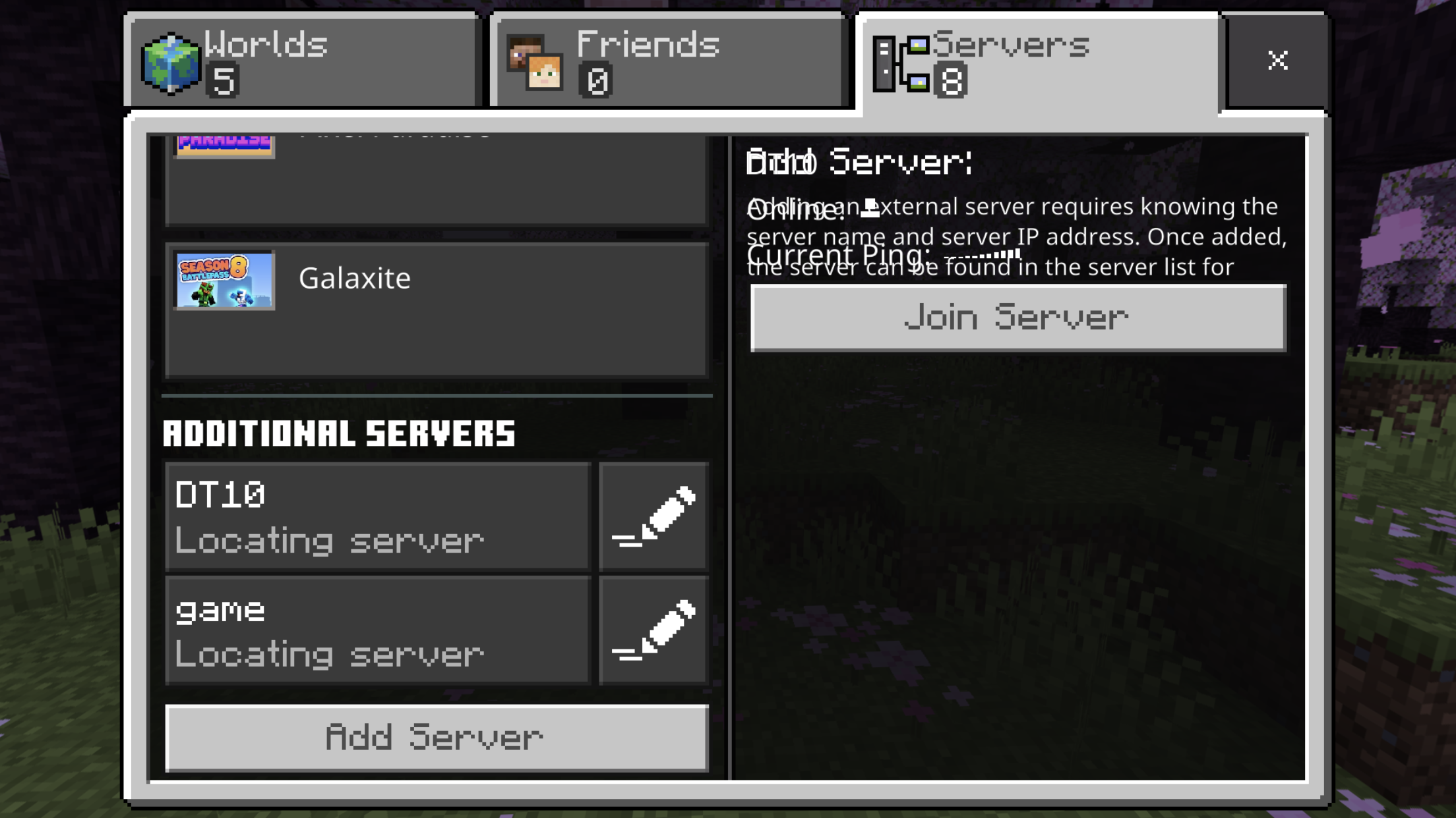 When going into the server list sometimes the add server text overlaps the server info you last had on.